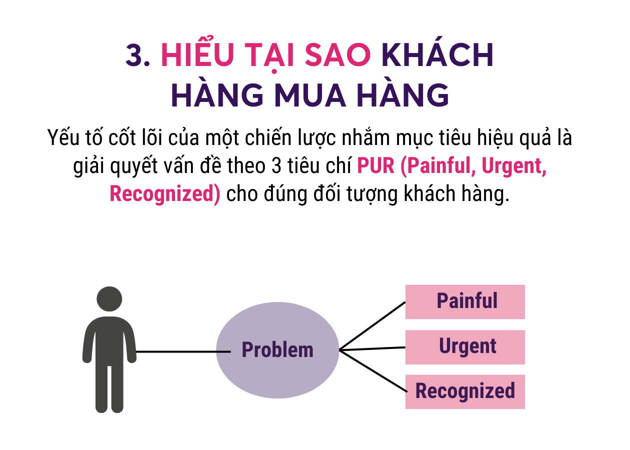 Bạn muốn bán hàng hiệu quả? Hãy giải quyết đúng vấn đề khách hàng đang gặp phải! Sau quá trình học hỏi và làm việc thì mình nhận thấy rằng, khách hàng chỉ thực sự hành động mua hàng khi họ gặp một vấn đề với 3 tiêu chí PUR: