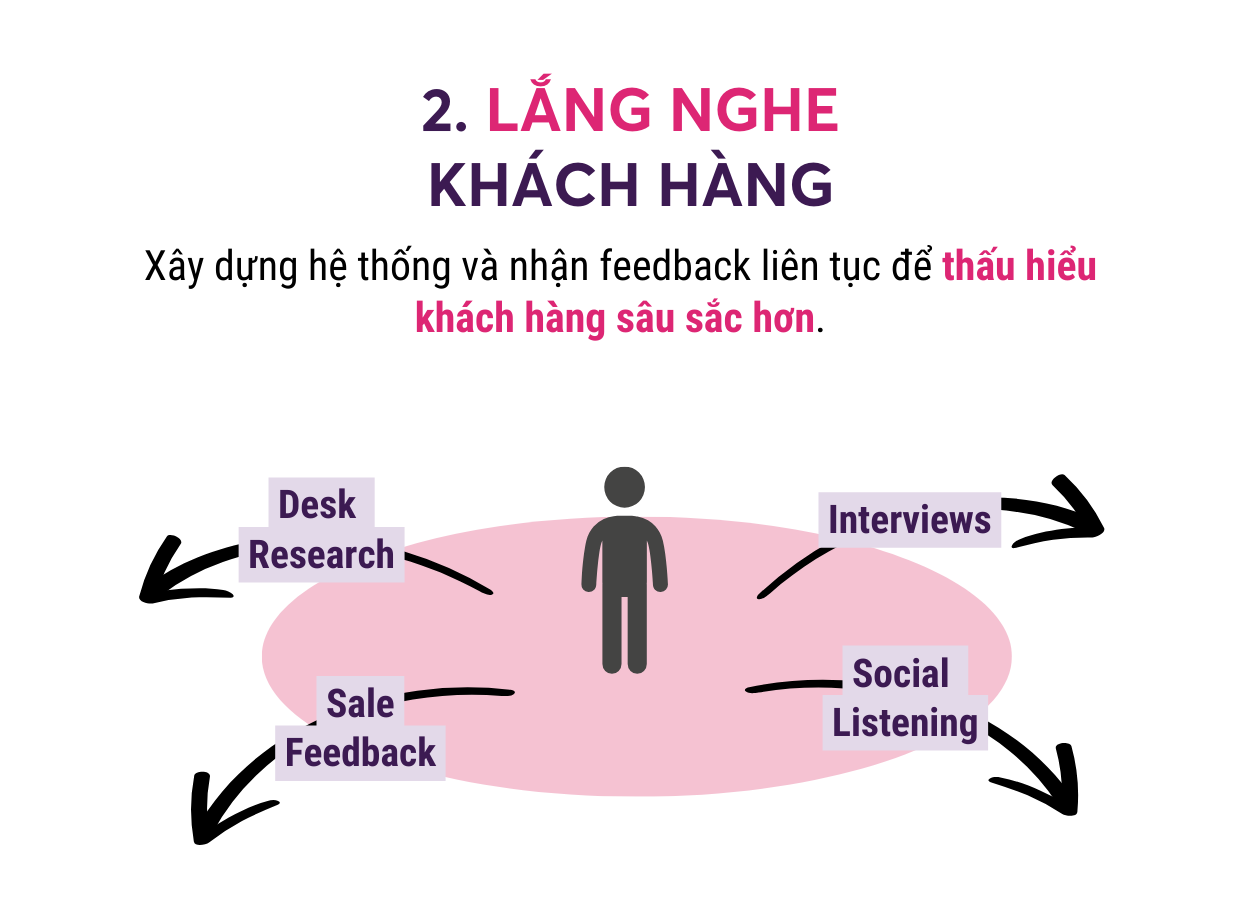 Để có thể thực sự thấu hiểu khách hàng thì bạn cần liên tục cập nhật insight khách hàng. Đây là một vài cách mình dùng để “nghe” khách hàng thật, bạn có thể tham khảo: