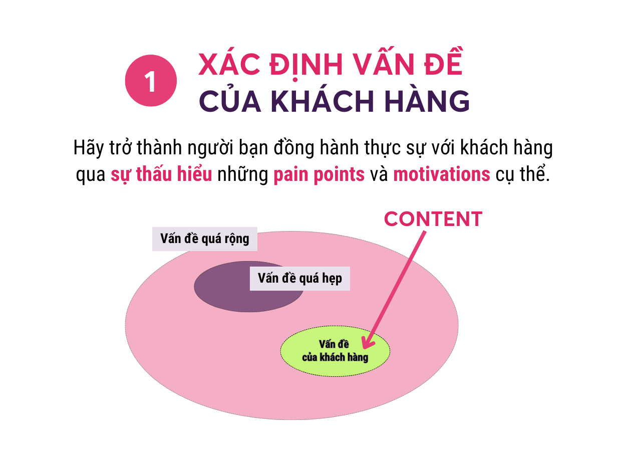 Và bài viết bắt đầu bằng nỗi đau – chứ không phải từ sản phẩm. Hãy viết đúng trọng tâm vấn đề .Tránh quá rộng hoặc quá hẹp, hãy tập trung vào khoảng giao thoa giữa vấn đề của khách hàng và chuyên môn của bạn.