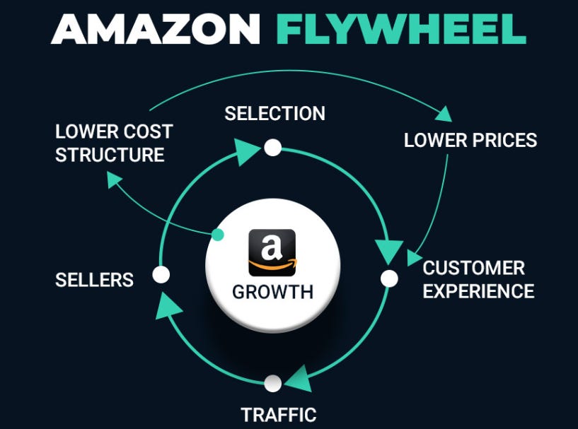 Một trong những khái niệm nổi tiếng nhất của Amazon là Flywheel, được Jeff Bezos và đội ngũ phát triển trong giai đoạn đầu những năm 2000.