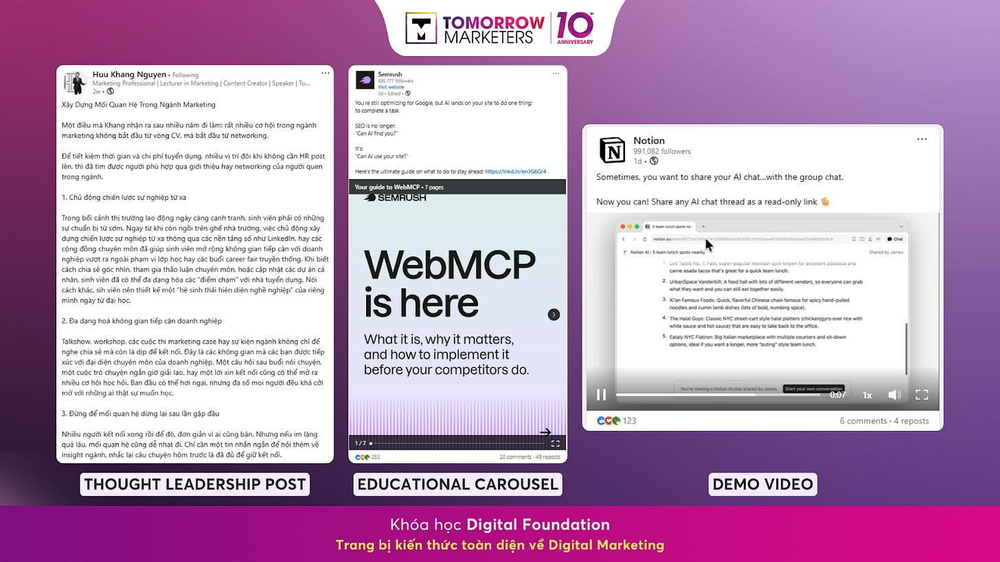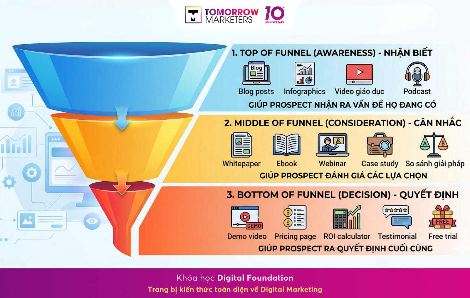 Muốn nắm vững nền tảng Digital Marketing, từ tư duy chiến lược đến thực chiến trên từng kênh, để tự tin bước vào B2B? Tham khảo khóa học Digital Foundation của Tomorrow Marketers.