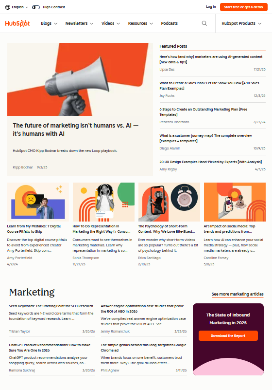 Thay vì đổ dồn ngân sách vào quảng cáo outbound truyền thống, HubSpot đã tập trung xây dựng một thư viện khổng lồ về marketing, sales, và CRM ở mọi định dạng nội dung từ blog, newsletter, video, podcast,... Tất cả đều miễn phí, chất lượng cao, và cực kỳ thực dụng với người làm marketing.