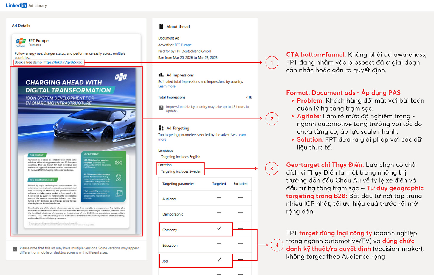 Dưới đây là một ví dụ về cách một doanh nghiệp công nghệ B2B Việt Nam triển khai LinkedIn Ads bài bản tại thị trường quốc tế.