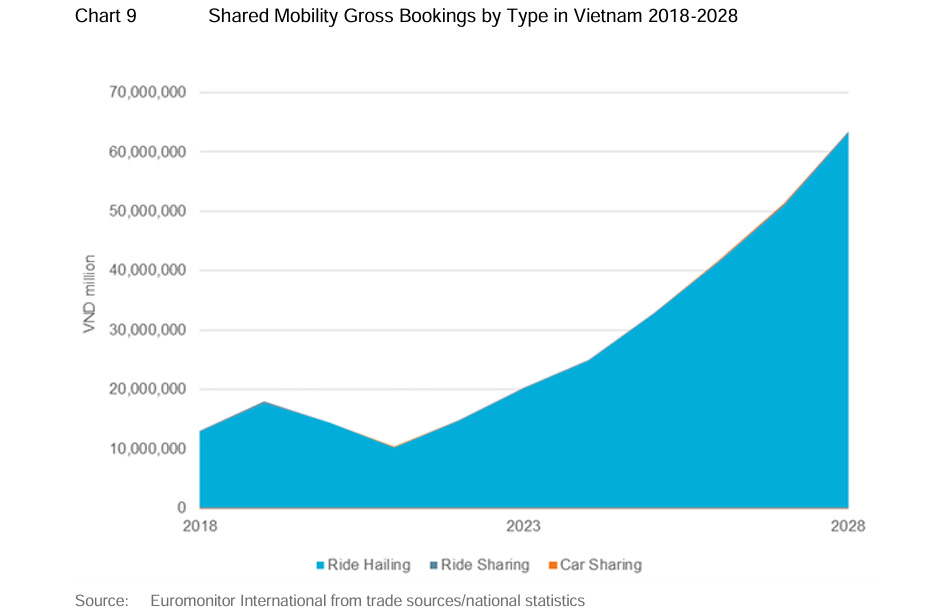 Chỉ trong chưa đầy một thập kỷ, thị trường ride-hailing tại Việt Nam đã chứng kiến sự thay đổi ngoạn mục. Từ một khái niệm mới mẻ năm 2014, ngày nay dịch vụ gọi xe qua ứng dụng đã trở thành thói quen di chuyển hằng ngày của hàng triệu người. Theo Euromonitor International, giá trị giao dịch của ngành Shared Mobility dự kiến tăng tới 157% trong giai đoạn 2023-2028 - một con số cho thấy tiềm năng tăng trưởng vẫn rất lớn.