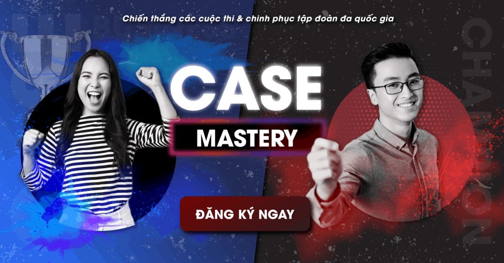 Mình tin rằng học Business Case hiệu quả không phải là chỉ đọc xong một case study và biết thêm một case study đó. Mấu chốt hình thành khả năng giải quyết Business Case nhạy bén chính là việc học được “tư duy giải case” của cả một dạng case thông qua những case study được phân tích. Bạn có thể tham khảo khóa học Case Mastery để nắm chắc tư duy tiếp cận vấn đề, giải quyết case study hiệu quả và từ đó có thể dễ dàng chinh phục bất cứ đề bài nào!!
