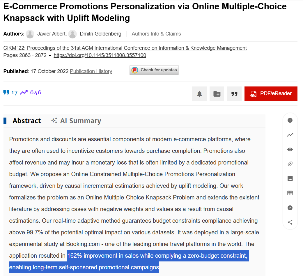 Với khả năng phân tích dự báo mạnh mẽ, AI cho phép doanh nghiệp đọc vị tâm lý và khả năng tài chính của từng cá nhân để tự động điều chỉnh mức ưu đãi hoặc quà tặng đi kèm. Thay vì áp dụng các kịch bản giảm giá đại trà gây lãng phí ngân sách đối với nhóm khách hàng chắc chắn sẽ mua, hệ thống AI tập trung phân loại và tác động vào nhóm khách hàng có thể được thuyết phục đặt phòng khi có tác động của khuyến mãi.