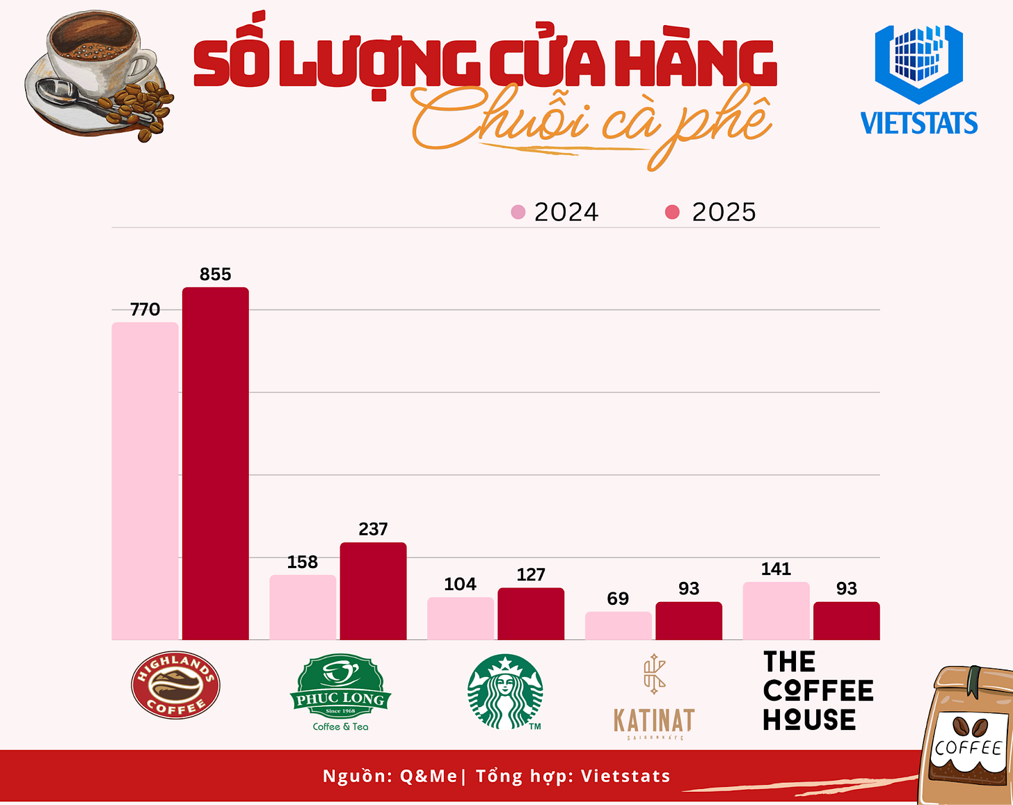 Song song với khó khăn tài chính, mạng lưới cửa hàng của The Coffee House cũng bị thu hẹp đáng kể trong năm 2025. Theo Vietstats, tại thời điểm đầu năm, chuỗi chỉ còn khoảng 93 cửa hàng trên toàn quốc, giảm mạnh so với hơn 150 cửa hàng vào cuối năm 2023.